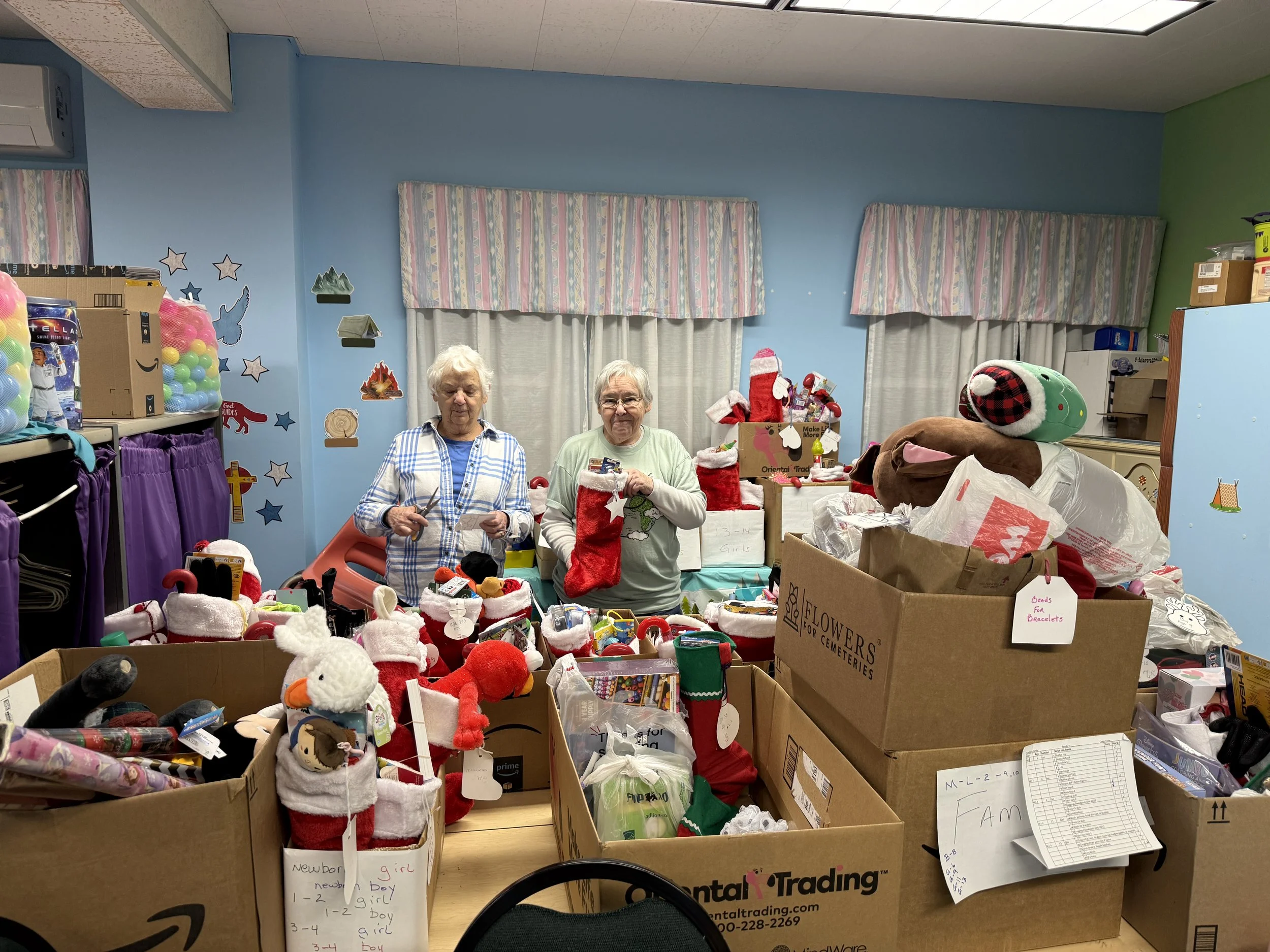 Loading the stockings with donated gifts to help Havre de Grace students and their families have a Merry Christmas..