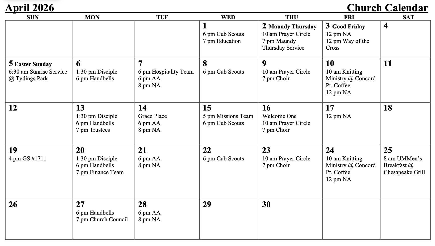 Keep up to date on happenings at the Havre de Grace United Methodist Church. Click to see our newsletter -